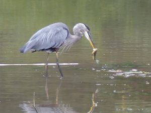 久し振りにアオサギの捕食ビデオです。場所はいつものIvy Creek、たぶん今年の春にここで生まれた数十羽のうちの一羽でしょう。