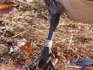 去年、散歩の途中で足輪の付いたカナダグースと出逢い、足輪番号を米国地質調査書にリポートしたらCertificateを受け取りました。 そして今日また足輪の付いたグースがいたので写真を撮って家に帰って拡大してみたら・・・