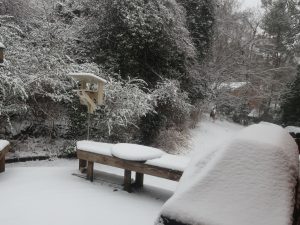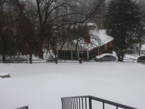 三日前に積雪があったばかりのシャーロッツビル、今日も朝から一日雪が降りました。UVAは朝10時までオンライン、10時からin person授業でした。