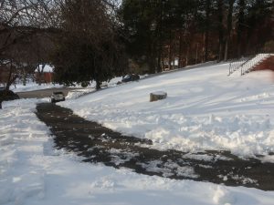 3日前に降った雪が凍ったまま気温が上がらないので、我が家のドライブウェイの坂道の氷を鉄のシャベルで破壊しようと試みましたが・・